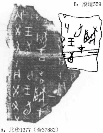 首页 / 甲骨学 / 甲骨缀合 / 殷契綴合第29則(另替換第5則)【展翔】殷契綴合第29則(另替換第5則)【展翔】 编辑:admin 2020-10-05 展翔 首都師範大學甲骨文研究中心,出土文獻與中國古代文明研究協同創新中心 第5則(替換原第5則:合11044+北圖3516) A:北珍1377(合37882) B:殷遺559 第29則 A:北珍1405(合39014) B:山東1243 (綴合得到黃天樹師的悉心指導和鼓勵,謹致謝忱!)