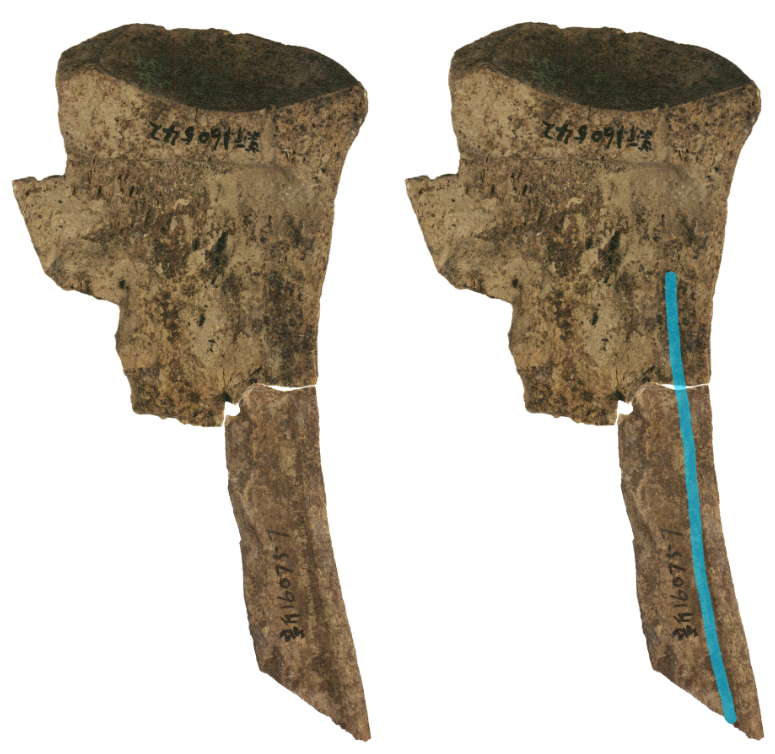 首页 / 甲骨学 / 甲骨缀合 / 甲骨綴合第239則【楊熠】甲骨綴合第239則【楊熠】 编辑:admin 2023-02-162023-02-28 甲骨綴合第239則 楊 熠 復旦大學出土文獻與古文字研究中心 第239則 A:宮藏馬256(合集32995、歷拓4148) B:宮藏馬257(合集33062、歷拓4330) C:安明2678(合集32286) (局部) 說明:“及”字左側的白點並非筆畫,[1]而是甲骨表面一條細長痕跡的一部分。這條痕跡主體位於C版,頂端一小段在B版上,綴合後可以貫通。 參吳麗婉:《〈甲骨文字編〉校補》,首都師範大學博士學位論文(指導教師:黃天樹),2017年,第5頁。 ↑