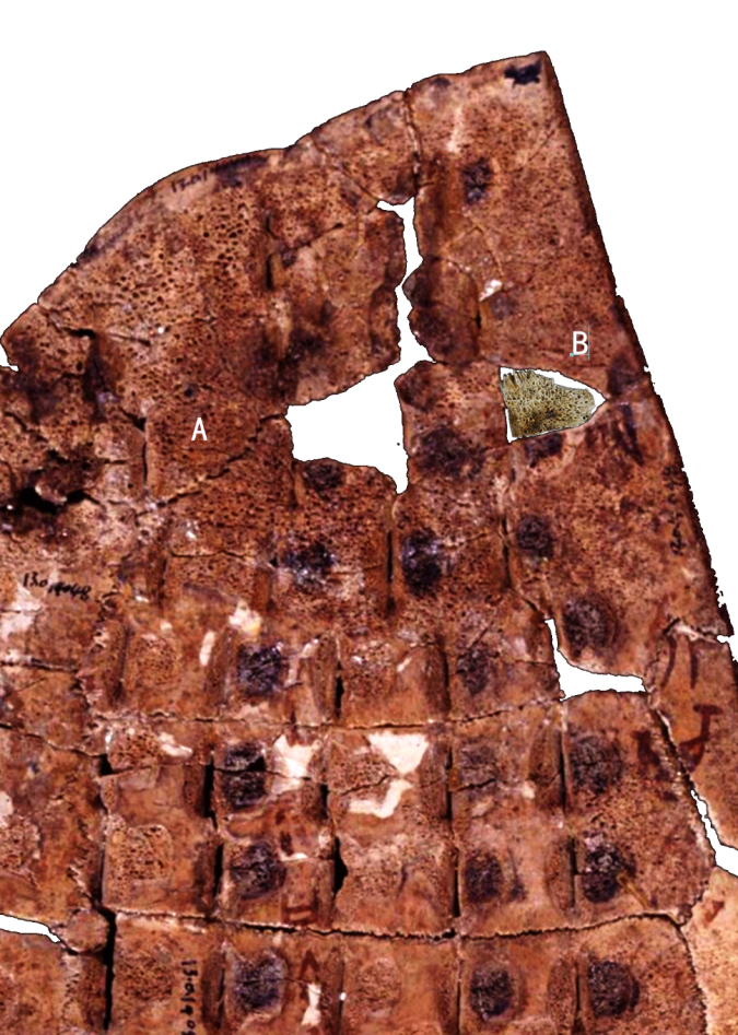 A由林宏明先生綴合,[1]今筆者加綴B(乙補526倒)。綴合後,正面、兆序相連,反面、復原局部鑽鑿。