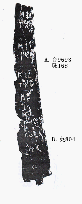 首页 / 甲骨学 / 甲骨缀合 / 賓組卜辭綴合一例賓組卜辭綴合一例 编辑:admin 2011-01-04 【首發】王子揚(首都師範大學文學院) 一.圖版: A:《合》9693(《珠》168)。 B:《英》804。 (圖版點擊放大) 二.釋文與說明: A、B兩版字體皆為典賓類,碴口基本密合,且有“受”、“黍”二字可以補足,兩版應該可以綴合。綴合後釋文如下: 不其受。 不其受年。 貞:我受黍年。 貞:我受年。 貞:呼婦好往,若。 貞:呼婦好往,若。 貞:呼婦好往,若。 附記:本組綴合得到了黃天樹師的悉心指導,謹致謝忱! 【文章下載】 王子揚2011年1月4日賓組卜辭綴合一例.doc