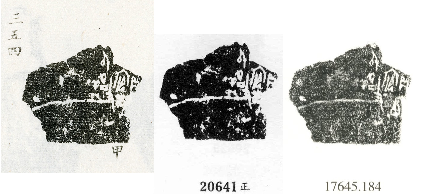 本版陽文對應的原片以往未被發現。據照片可知,對應陰文見於北圖455(《合》2916)。北圖455照片所見卜兆、裂紋亦反映在《上博》17645.184反面覆泥之上。
