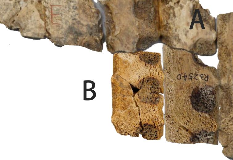A與B綴合後,齒縫咬合,符合甲橋形態。