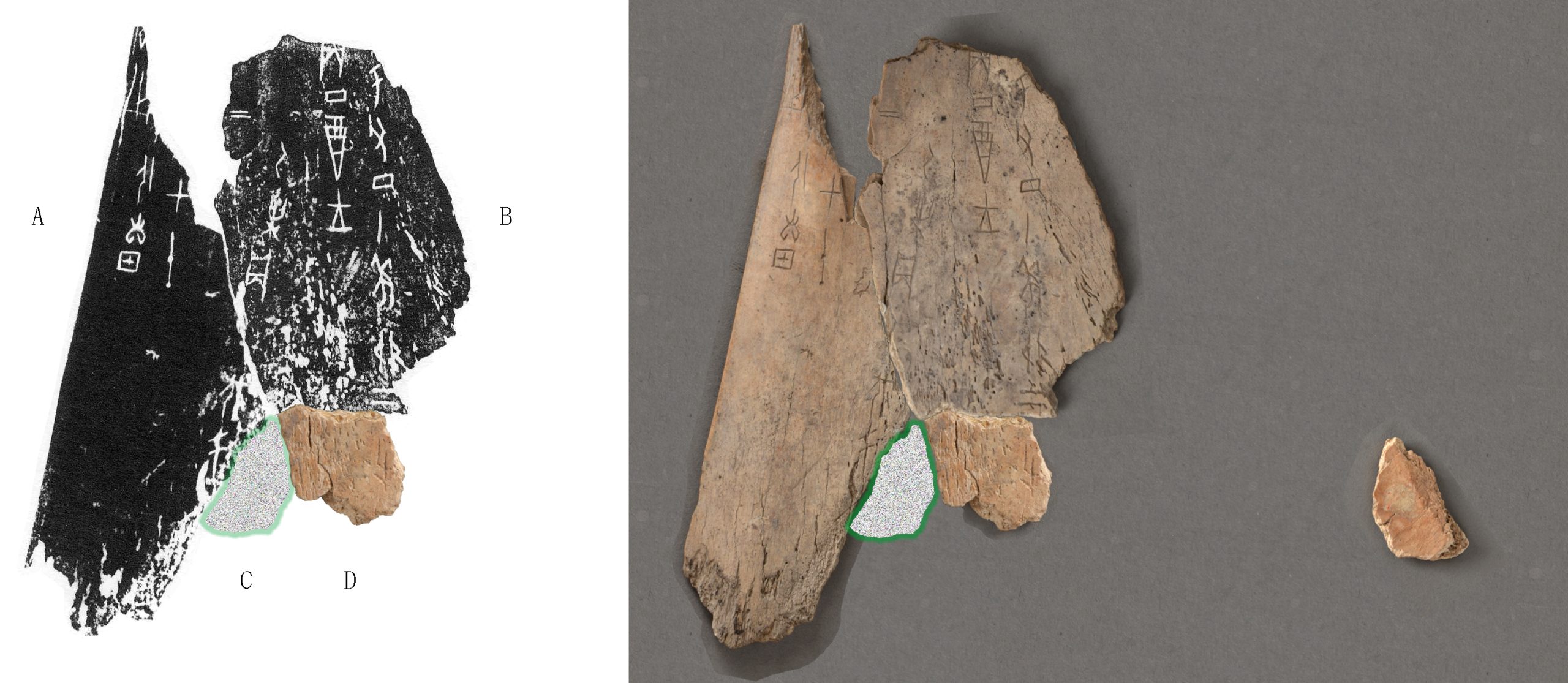 我雖在2025年7月31日整理這批材料並確認綴合,但未作正式處理並發表。11月25日,沈駿杰先生發表A+B的綴合,[4]文中已說明他與我二人分別獨立作出相同拼綴的情況。我很佩服沈先生利用舊資料即完美綴合兩片,同時感到有向大家介紹新材料、新綴合的必要,故簡述如上,請大家指教。