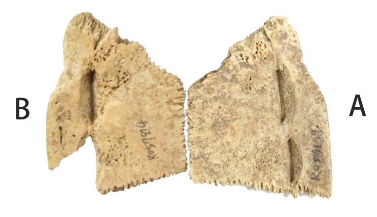 A與B綴合後,齒縫咬合,符合腹甲形態。