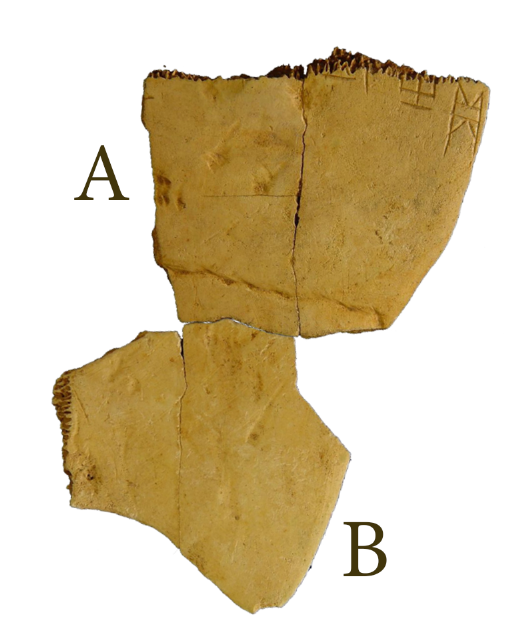 A版為張軍濤先生綴合,[1]今筆者加綴B版(R030839)。A與B版綴合後,折口密合,盾紋接續,補全殘字,符合辭例与尾甲形態特徵。