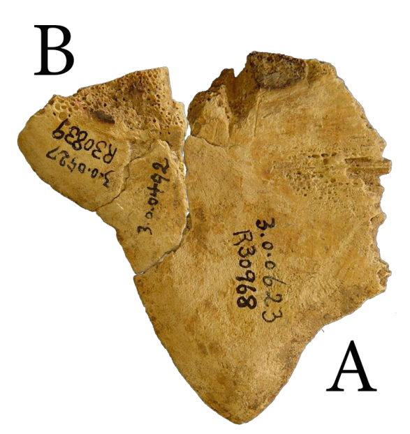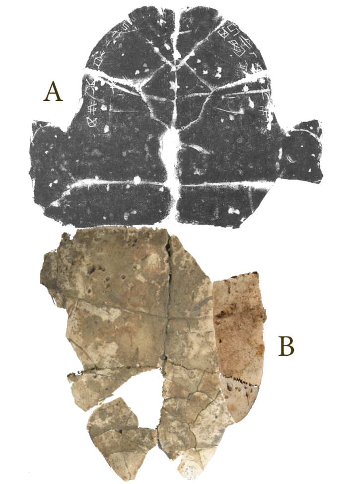 A版中R064796+R064588+乙2235為筆者綴合,[2]後李紫艷女士又綴入R054433,[3]今筆者再加綴B版(R055155)。A與B版綴合後,折口密合,盾紋、齒縫接續,符合後甲形態特徵。