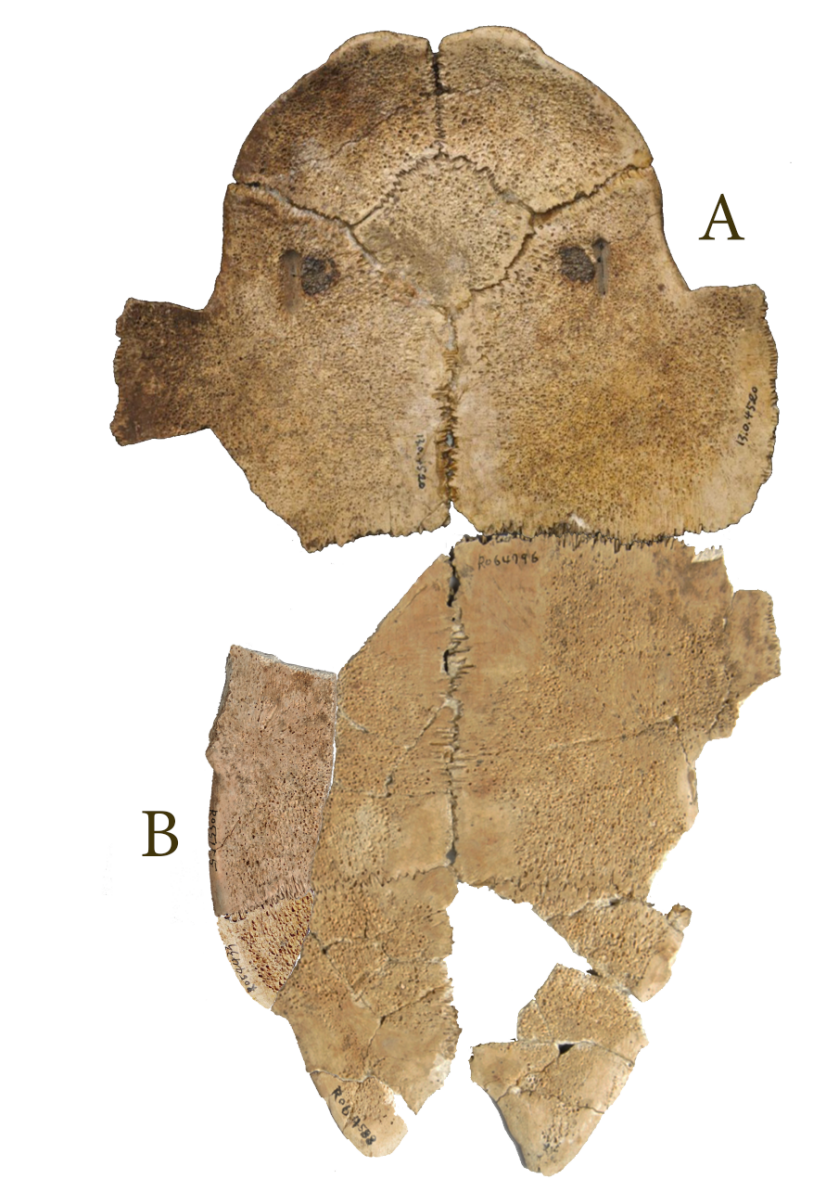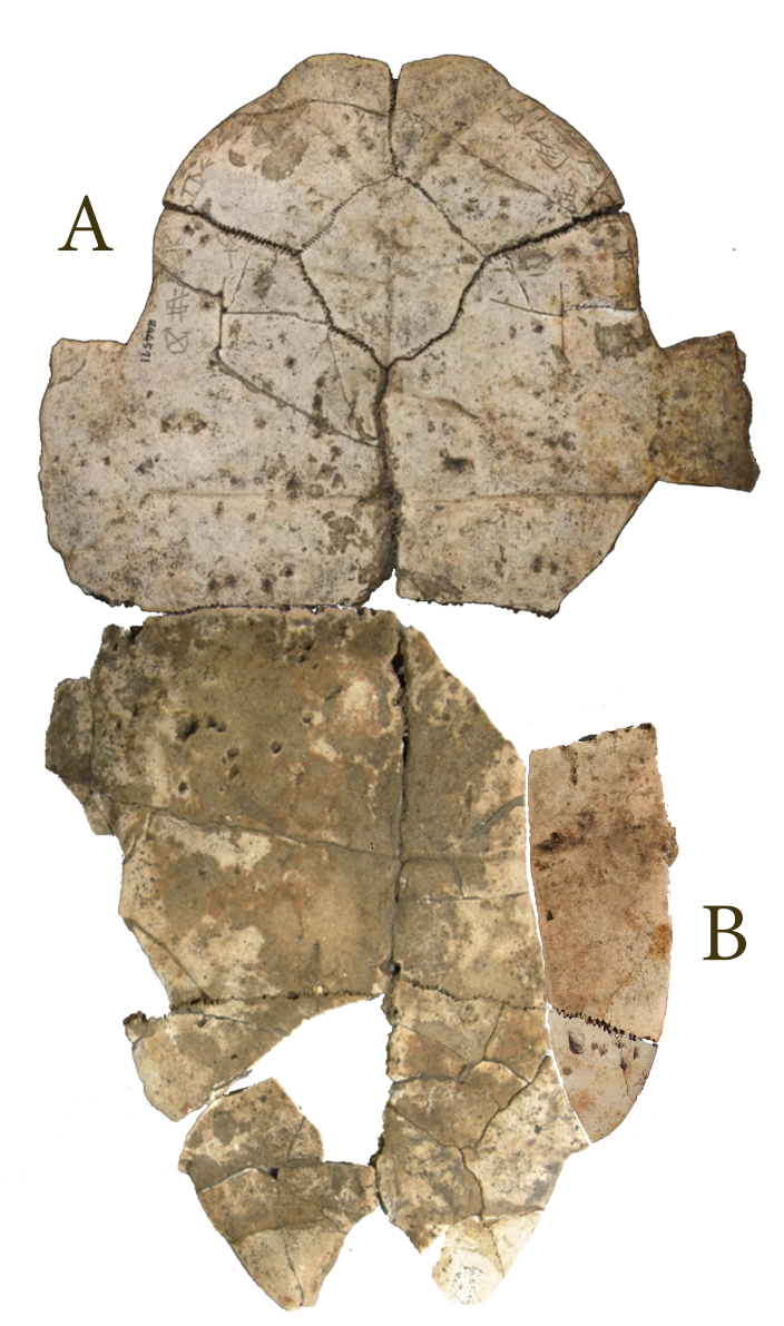 A與B版綴合後,折口密合,復原局部鑽鑿,符合尾甲形態特徵。