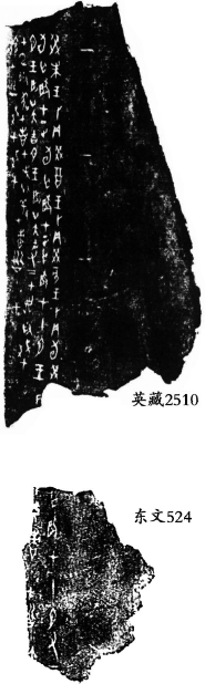 一、殷缀第20组A英2510是右胛骨,迎兆刻辞末行在左。而东文524(合集35583)末行在右。可能不是同一版卜骨,不能缀合。合集35883是照片。东文524是拓本。“东文”似无此拓。片号是否误记?