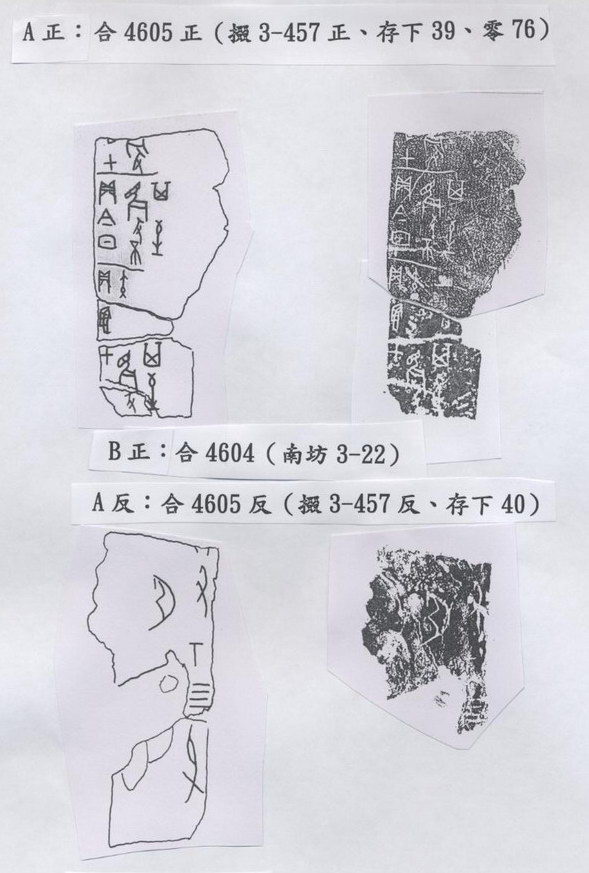 掇3-457比舊著錄及《合集》多出「貞」、「寅」、「不」三字,《殷契拾掇》三編刊行後,本片方能綴合。另外,合4604(南坊3-22)反面失錄,僅見於南坊3-23的摹本。