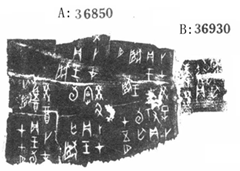 首页 / 甲骨学 / 甲骨缀合 / 《合集》試綴一則[孫亞冰]《合集》試綴一則[孫亞冰] 编辑:admin 2014-11-15 中國社會科學院歷史研究所 孫亞冰 A:《合集》36850 B:《合集》36930(续3.32.5) 說明:《合集》36850據《文物普查在西泠》(《中國文物報》2014年11月4日)一文可知,現藏于浙江西泠印社。西泠印社的17片甲骨是1999年楊魯安先生捐贈的。《合集來源表》說這片藏于“津博”,經查原始檔案,“津博”為“津楊”之誤,“津楊”應指天津的楊魯安。 本版綴合依據是同文卜辭《合集》36537、36851、36917。 【文章下载】 孫亞冰20141114《合集》試綴一則.doc