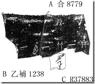 ∑:綴彙179=合22245(乙8783)+合22247主體(乙8812+乙8730+乙8802+乙8835+乙8791+乙8711+乙8836+乙8844+乙8773+乙8877+乙8781+乙8990)+合22254(乙8794)+合22510(乙8762)+乙8868+乙補7363倒+乙補7377倒+合31941(乙8795)綴合+乙補7378,白玉崢、林澐、持井康孝、常耀華、蔣玉斌、謝湘筠綴合